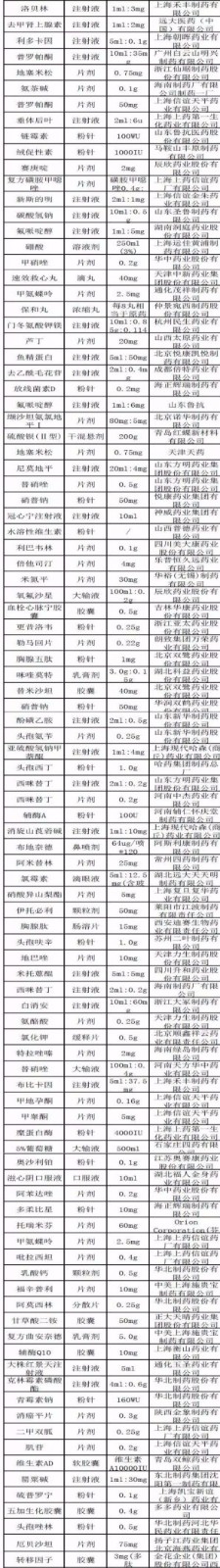 目錄顯示,303個(gè)藥品中,包括魚精蛋白注射液、維生素K1注射液、地高辛片等臨床緊缺藥;也有阿奇霉素粉針劑、諾氟沙星膠囊、阿司匹林腸溶片等常用藥品。